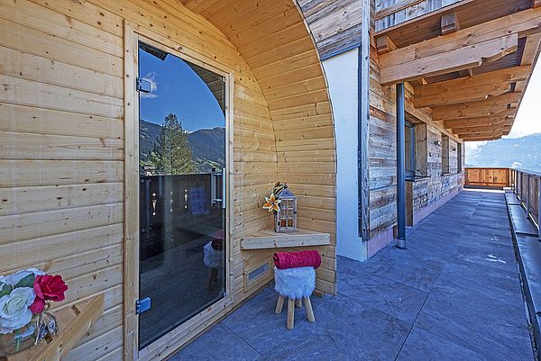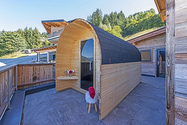 Panorama Fasssauna auf der Terrasse